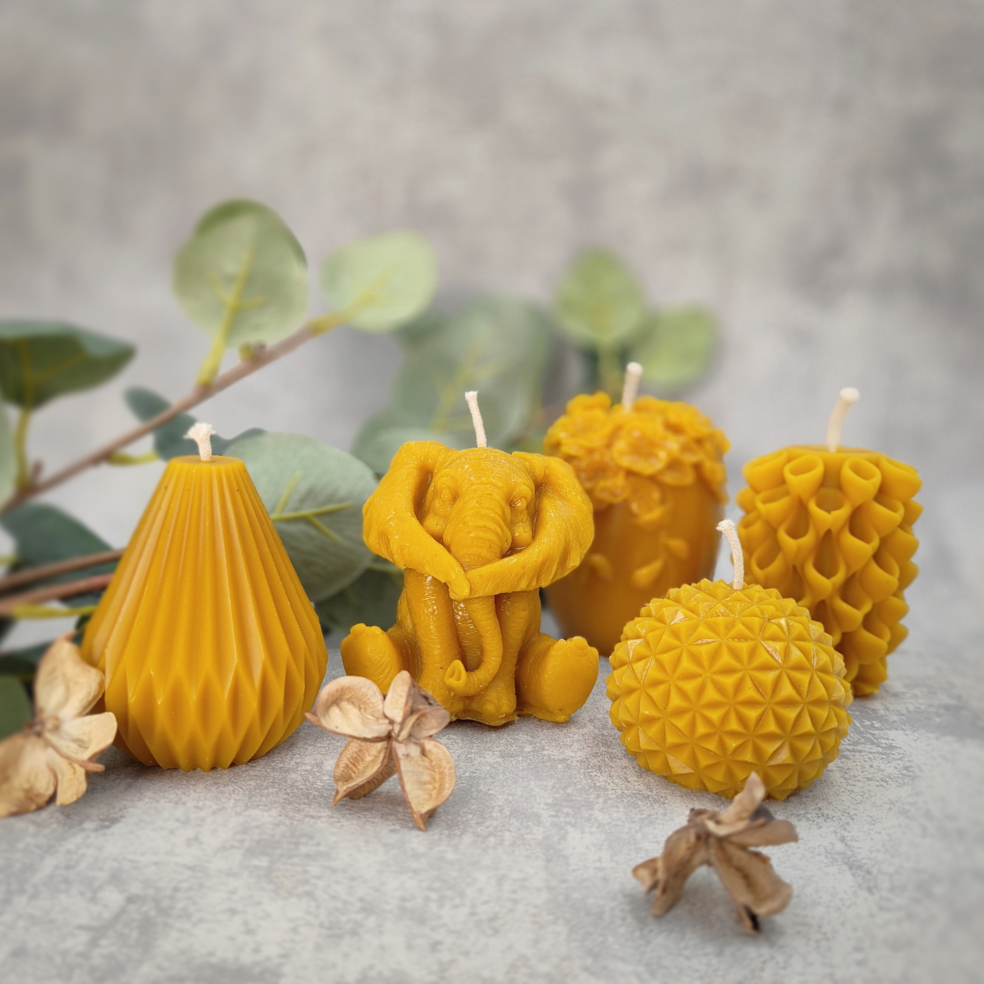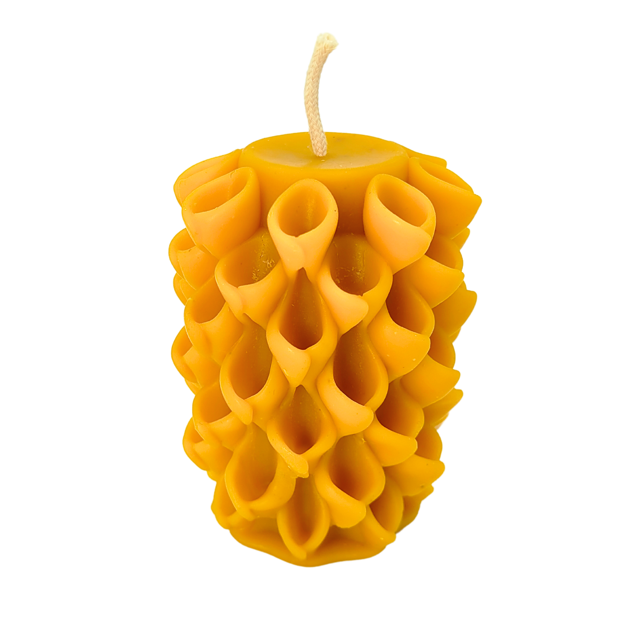 Świeca z naturalnego wosku pszczelego w modnym kształcie.